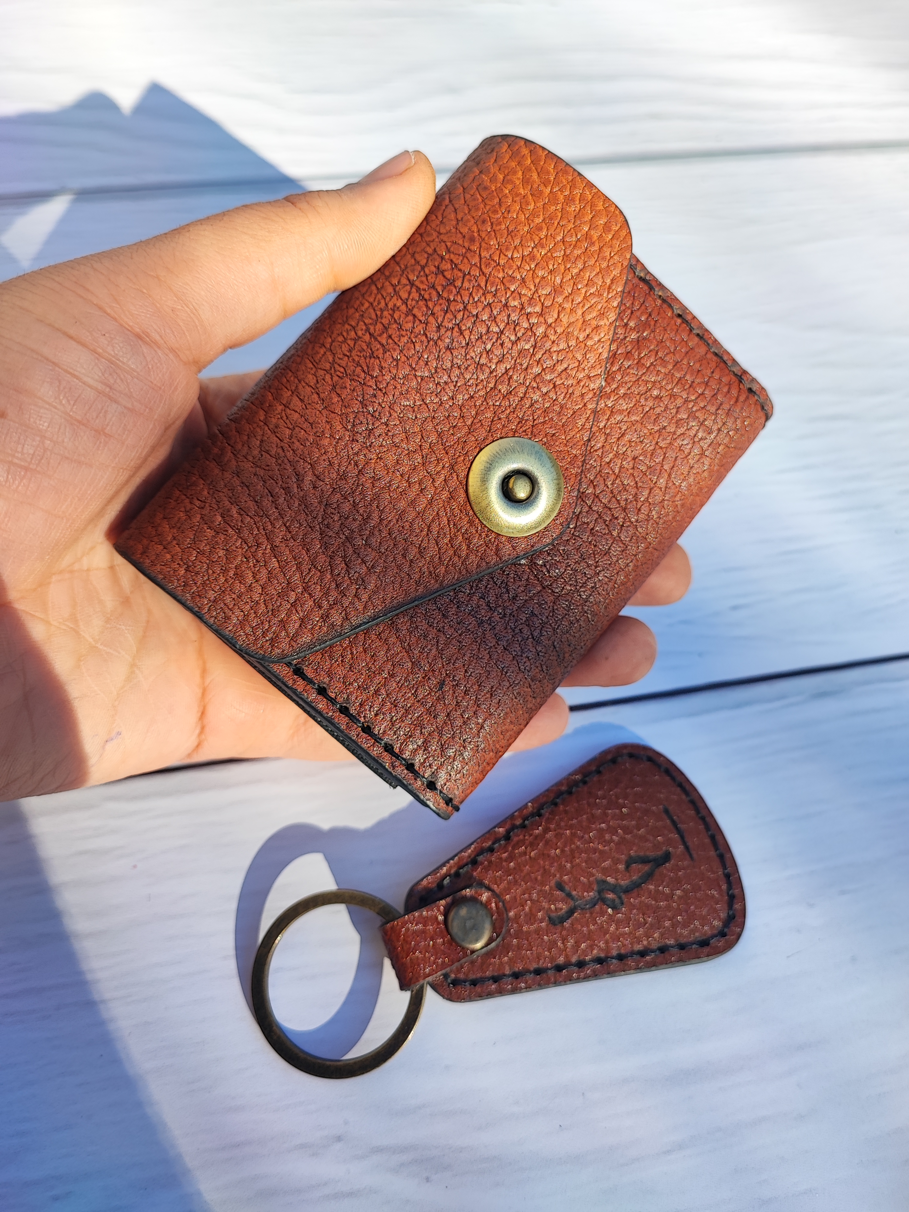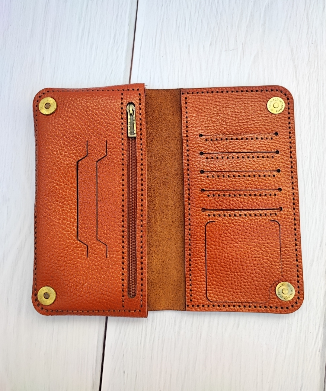 کیف پول چرم طبیعی گاوی دارای جیب موبایل